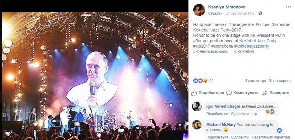 Так Симонова похизувалася, що на одній сцені з Путіним на фестивалі в окупованому Коктебелі.