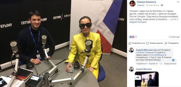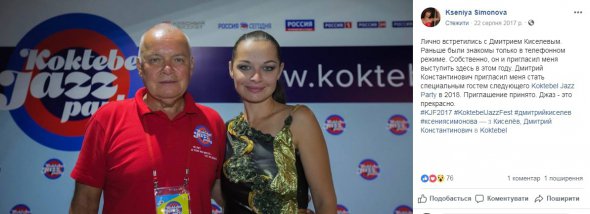 Серед світлин Симонової – позування на фоні російського триколора, президента РФ Володимира Путіна, фото в компанії кремлівського пропагандиста Дмитра Кисельова.