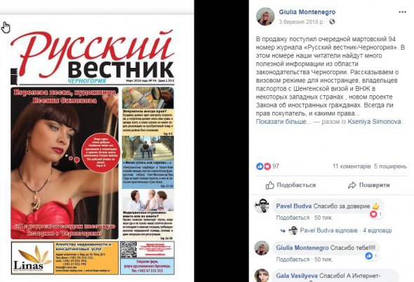Також майстриня зображена на шпальті журналу “Русский вестник-Чорногория”.