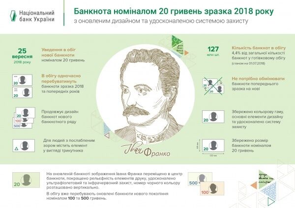 Напомним, на презентации новой купюры образца 2018 года в Нацбанке Украины 17 июля показали, как будут выглядеть новые 20-гривенны купюры, имеющие дополнительные степени защиты.